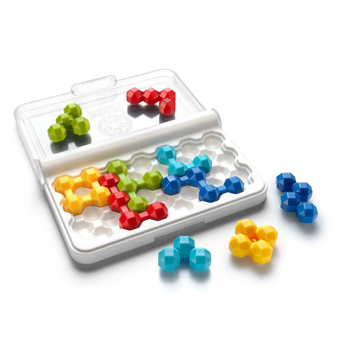 תכולה: לוח משחק, 10 חלקי משחק ב 5- צבעים, חוברת עם 120 אתגרים ופתרונות, הוראות משחק